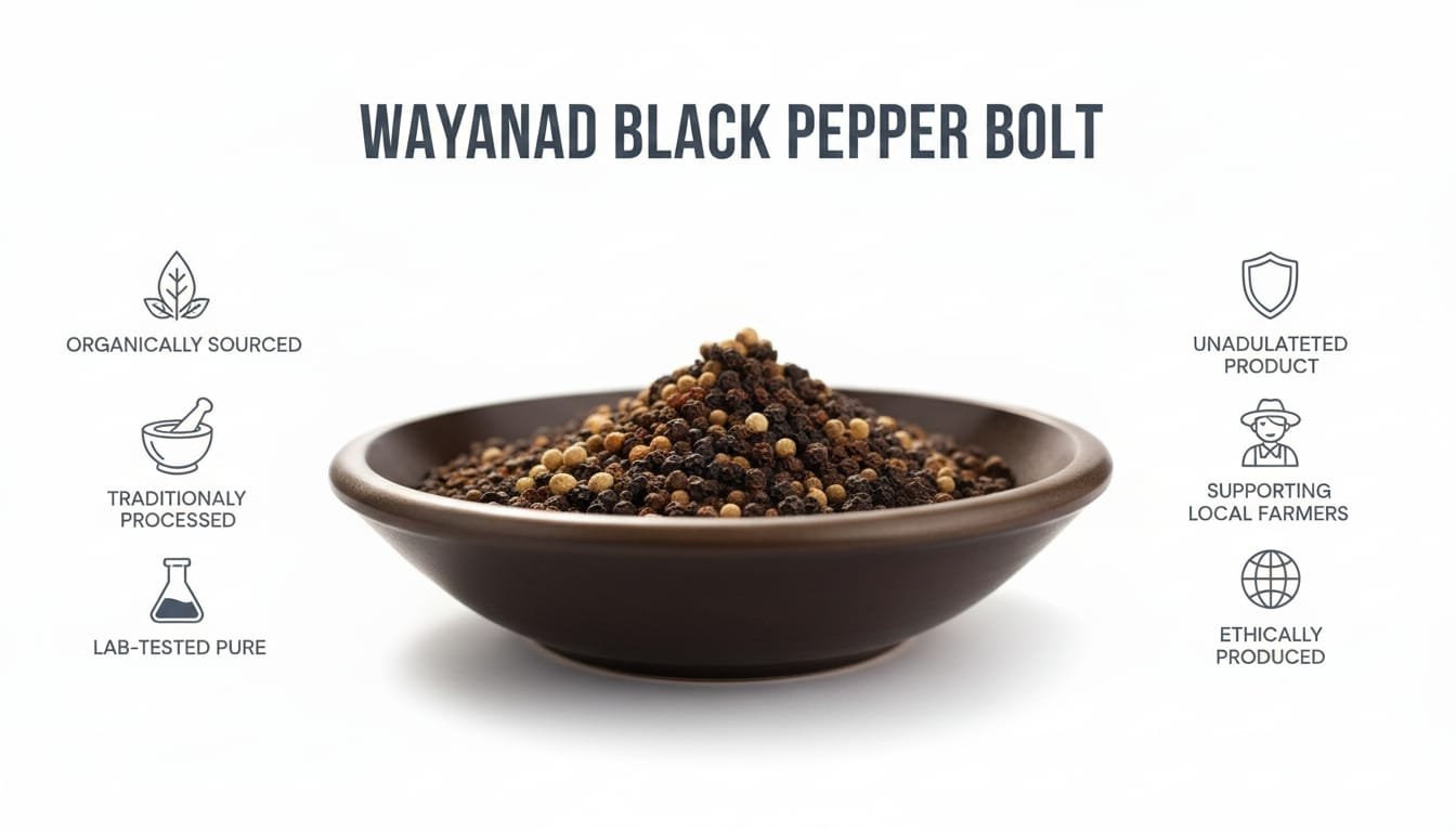 - Higher Potency: Our pure Wayanad Black Pepper Bolt contains high levels of Piperine. This natural compound is what helps your body absorb nutrients like Curcumin (from Turmeric) by up to 2000%. You cannot get this benefit from adulterated spices that are 50% fillers.